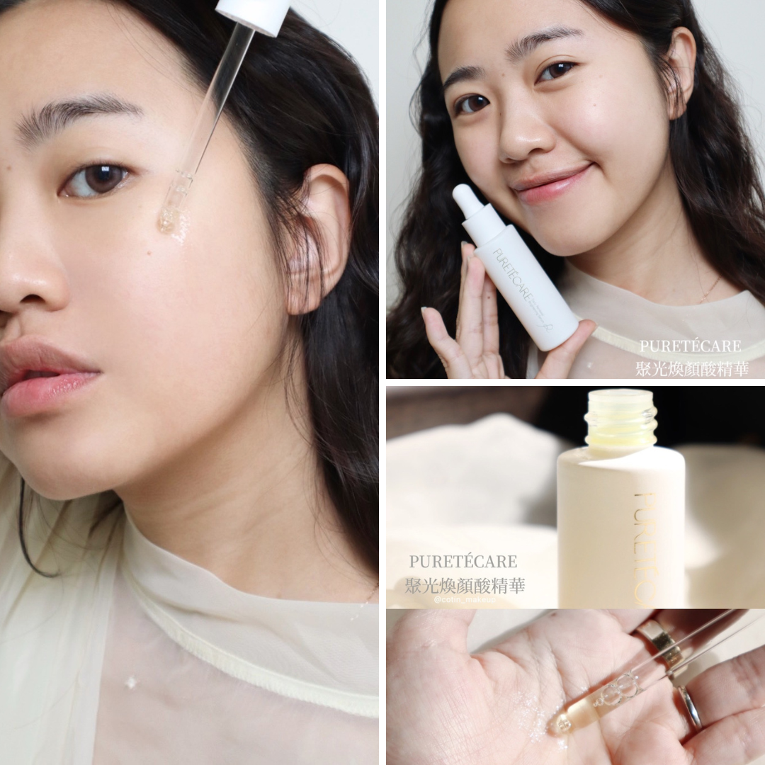Puretécare聚光煥顏酸精華好用度應該是我遇過A醇產品中的五顆星,不黏膩,水感易吸收,真心超級無敵大推!!是一個溫和代謝的新選擇!使用完後臉直接自帶Spotlight!