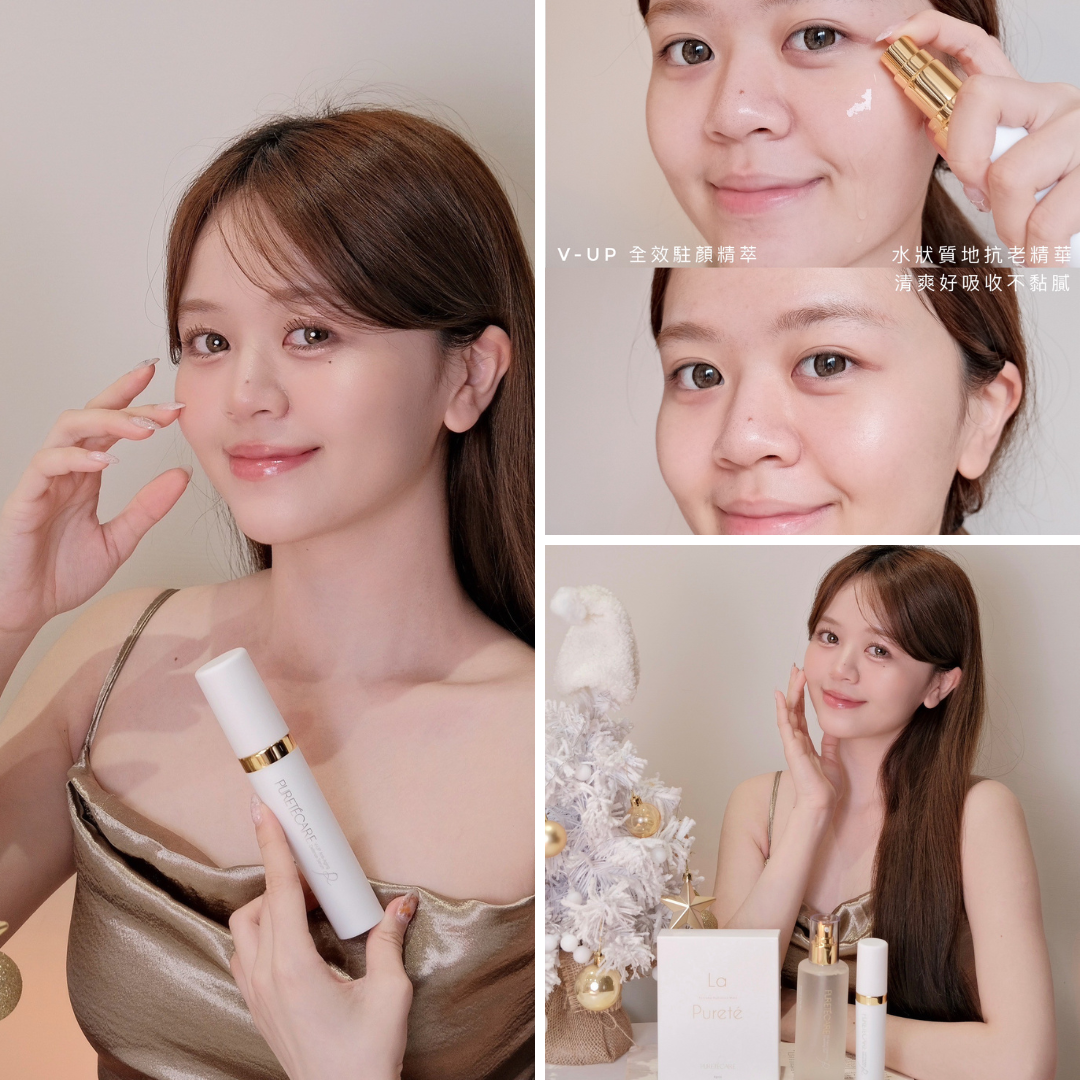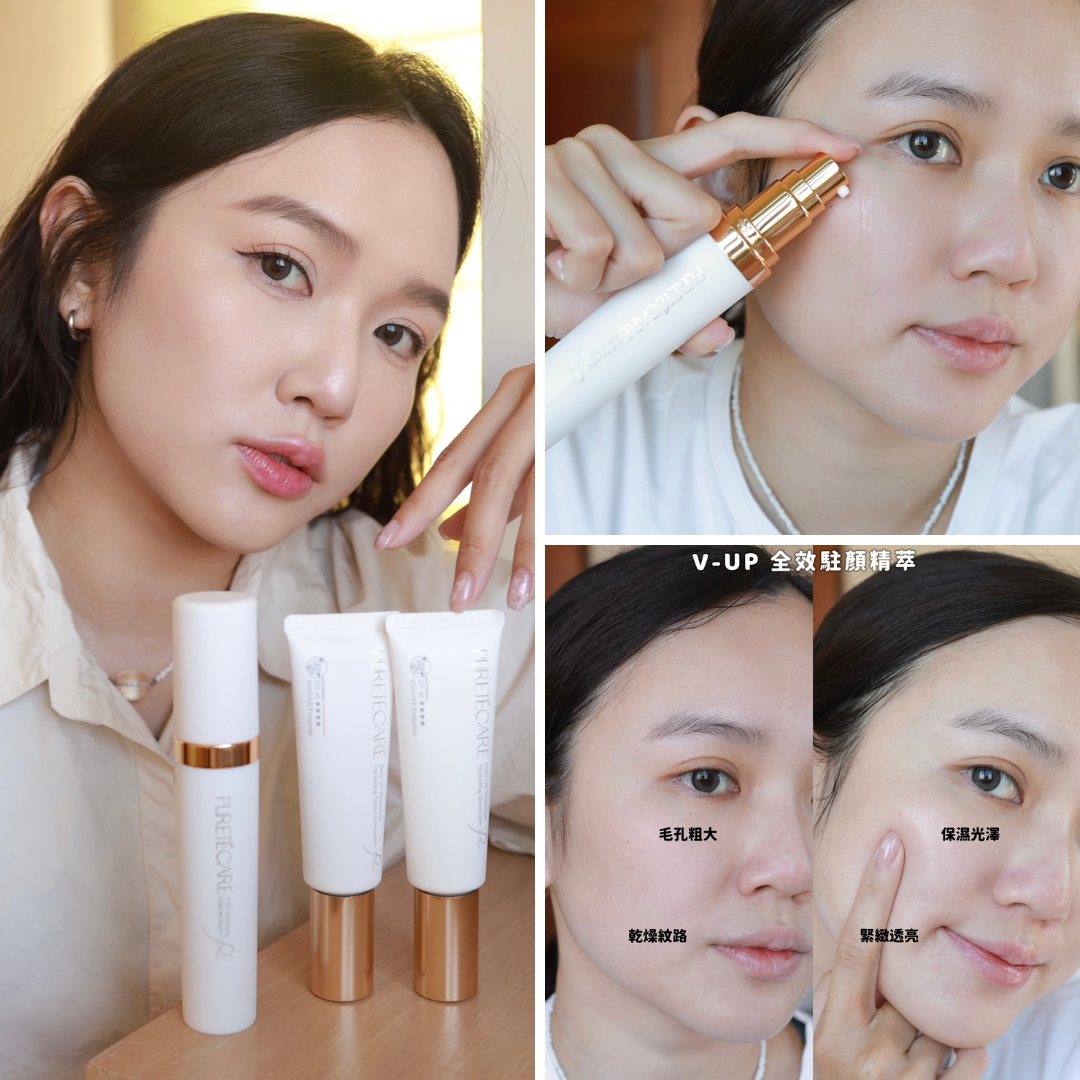 最大的優點就是保濕輕盈不黏膩,完全不會影響後續上妝,甚至在敷水導膜前使用V-UP精萃效果會更加乘唷。
