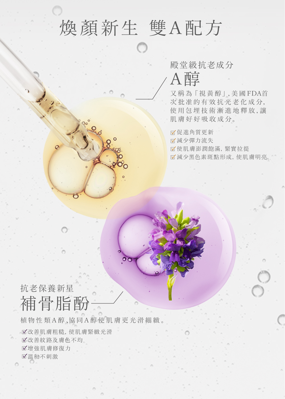 獨家溫和煥膚技術.雙A抗老撫紋配方