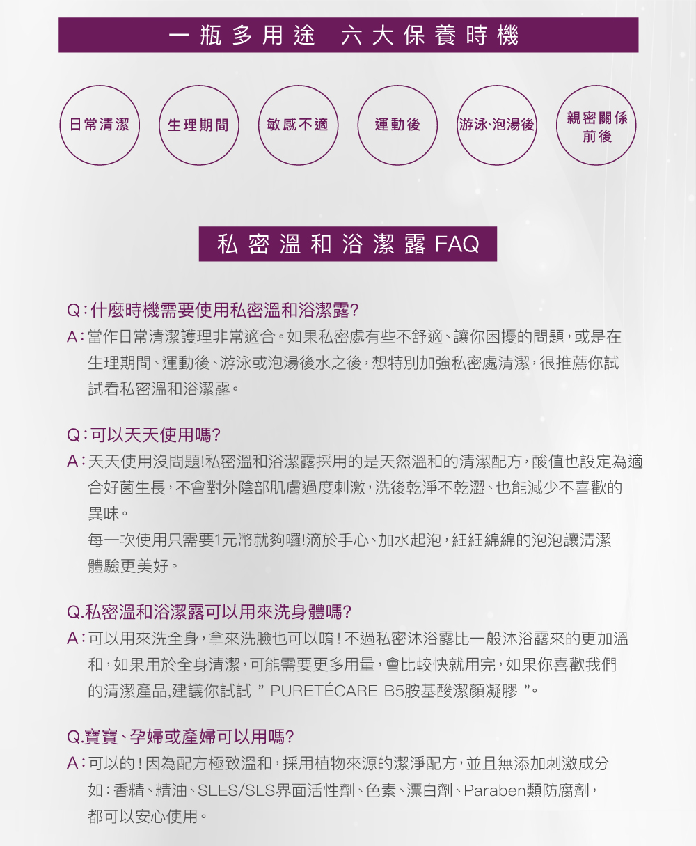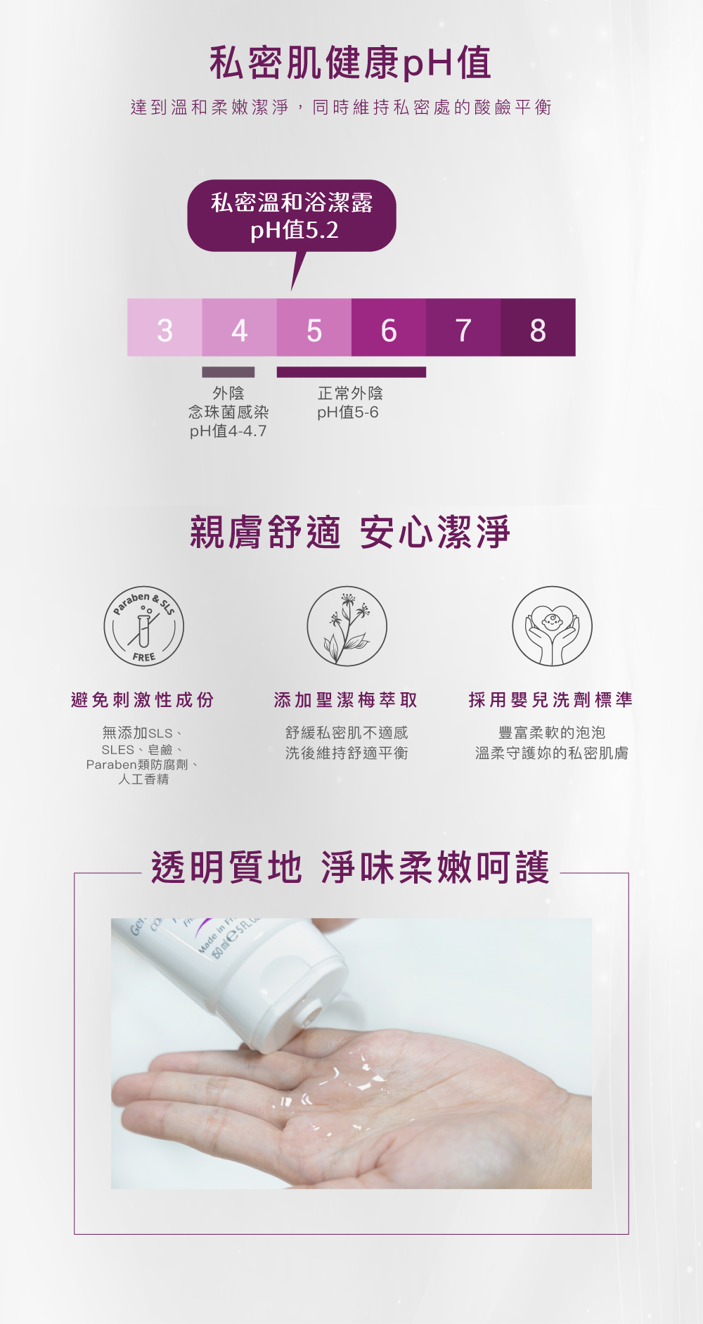 富含多種植物複方溫和有效成份阻絕私密處困擾,溫和潤澤、酸鹼平衡、健康細緻