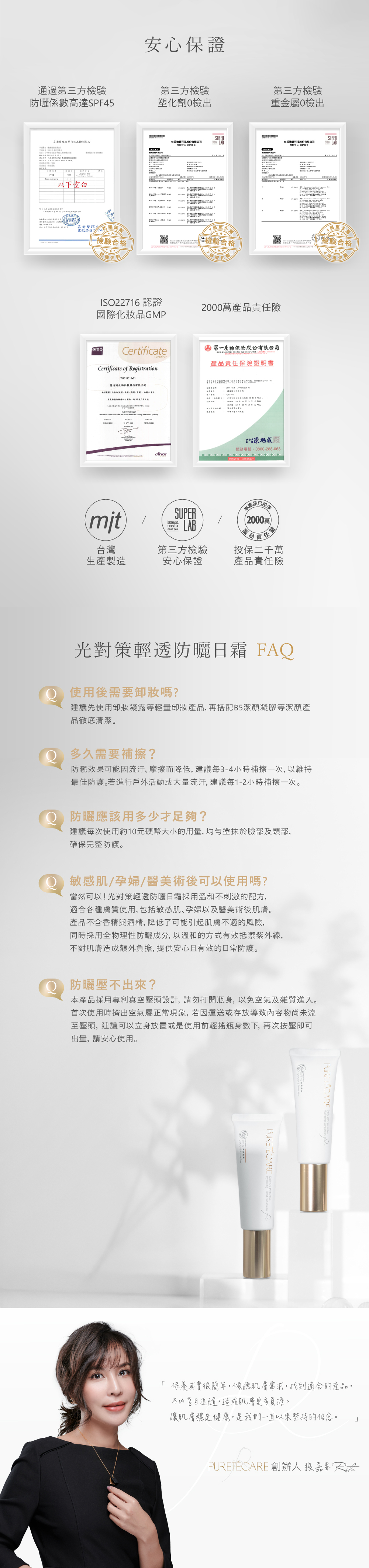 醫美修護防曬推薦【PURETÉCARE 光對策輕透防曬日霜】協同五項精華