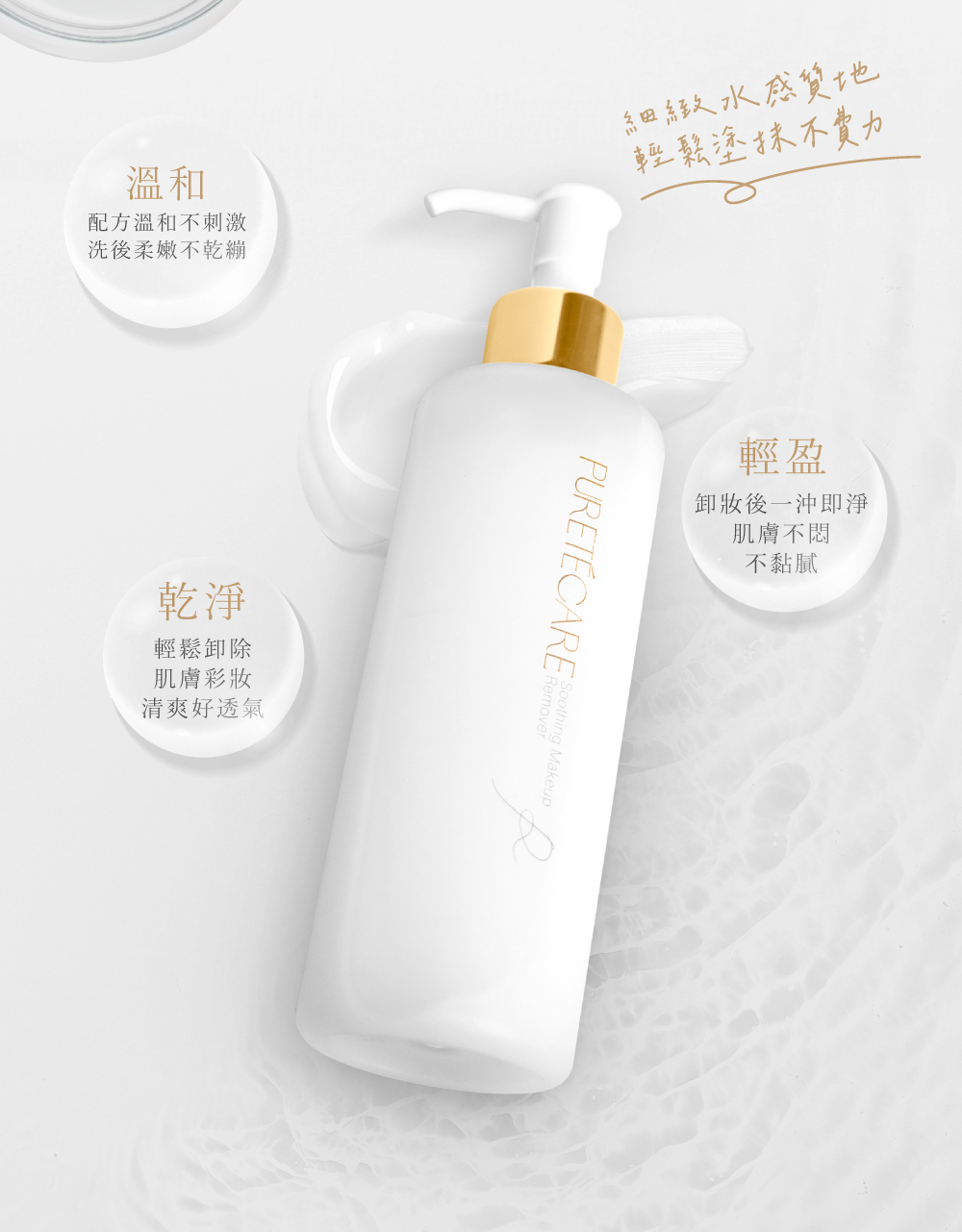 溫和卸妝提升肌膚滋潤度;輕乳化凝露質地不阻塞毛孔、且不油膩,卸後肌淨柔潤。